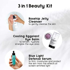 Rosehip Jelly Face Cleanser, Cooling Eggplant Eye Balm & Blue Light Defense Serum Set, Paraben Free, Skincare Products for Face.